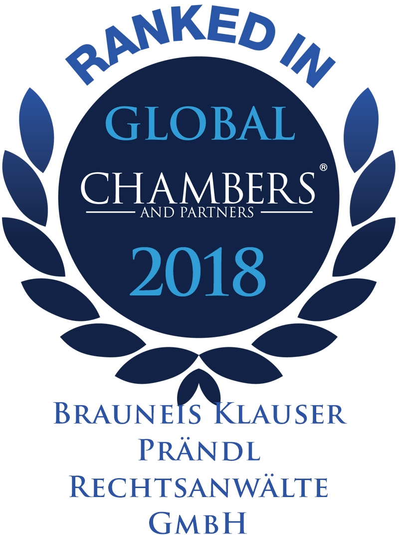 Brauneis Klauser Prändl Rechtsanwälte in Chambers & Partners Global 2018 gelistet